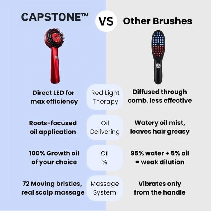 Capstone™ uses proven Red Light Therapy to reduce hair fall & support stronger hair — naturally. ✨